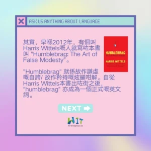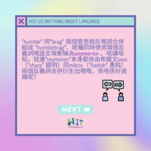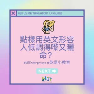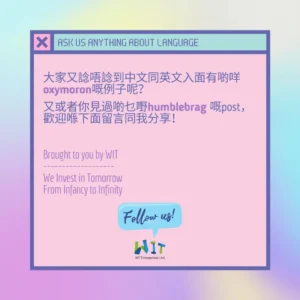 由菲菲老師主持的【WIT 大講堂】隆重登場將會為大家介紹中西文化和有關語言的小知識 !